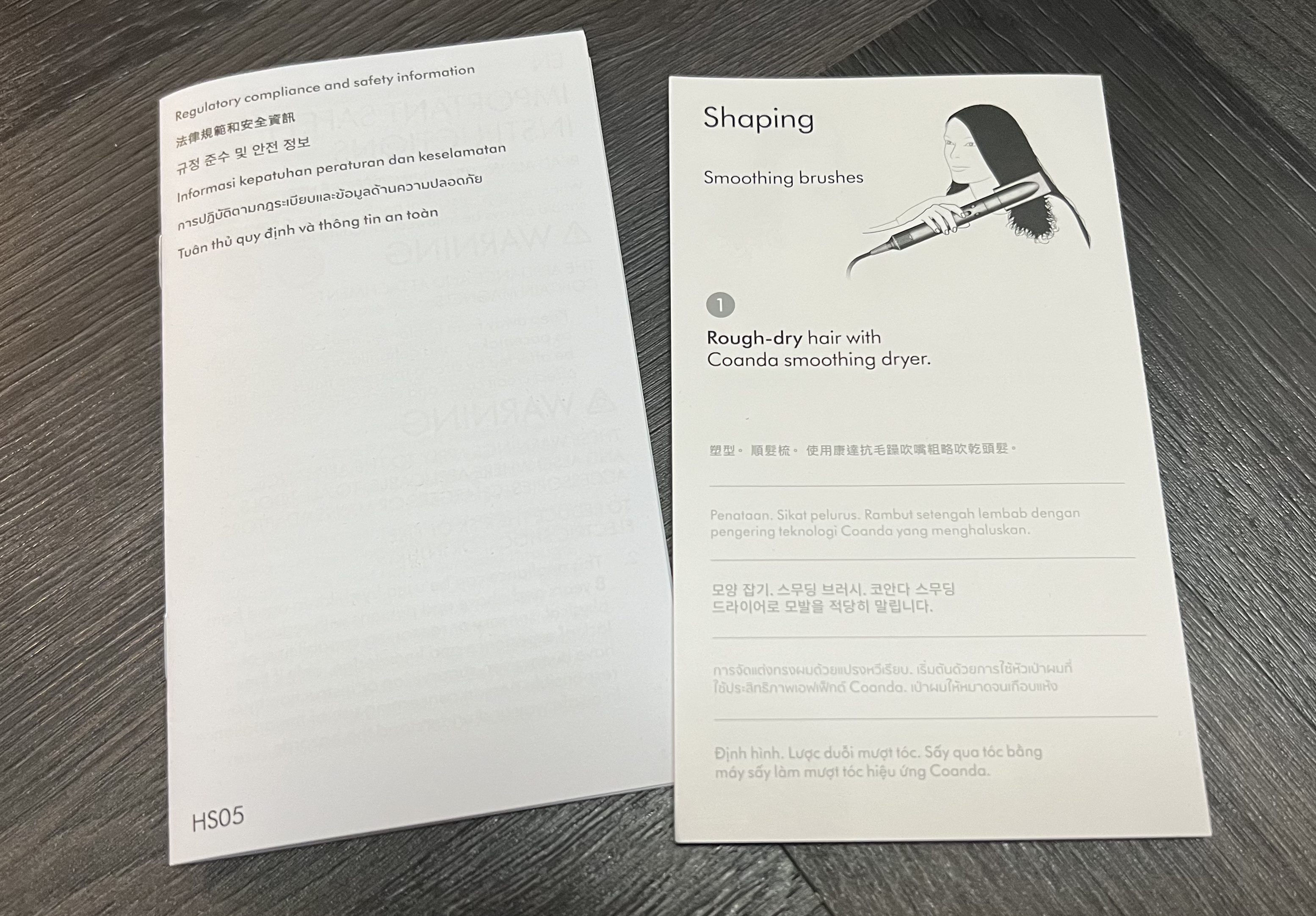 내가 가장 많이 사용할 것 같은 코안다 스무딩 드라이어(왼쪽)와 라운드 볼륨 브러시(오른쪽)이다. 드라이어는 2-in-1 기능을 가지고 있다.