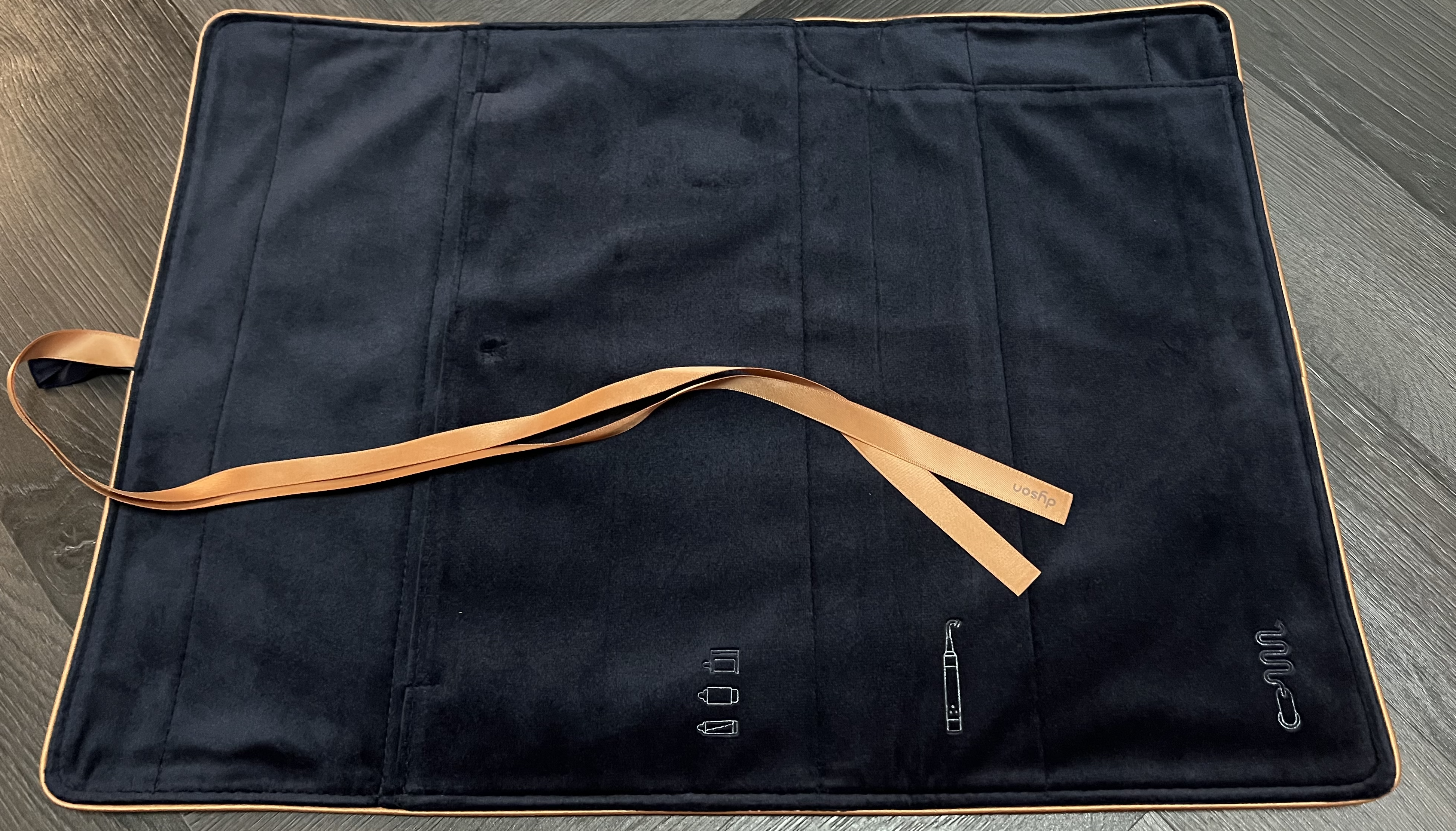 마지막으로 소개할 다이슨 에어랩 아이템은 여행용 파우치이다. 이 여행용 파우치는 다이슨의 엔지니어가 스타일러 본체와 3개의 부속품을 편리하게 휴대할 수 있도록 설계하였다고 한다.