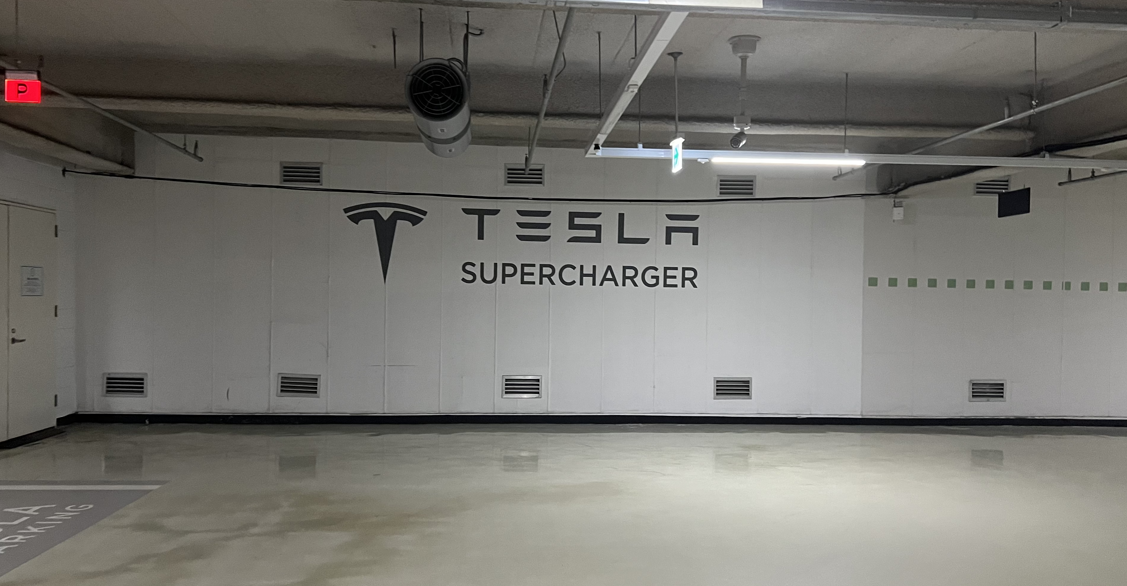 새벽이라 그런지 사람도 없고 주차공간도 매우 넉넉했다. (수퍼차저에 충전하고 있는 차량도 한 대도 없었...) 수퍼차저는 지하 주차장 4층으로 내려가면 된다.