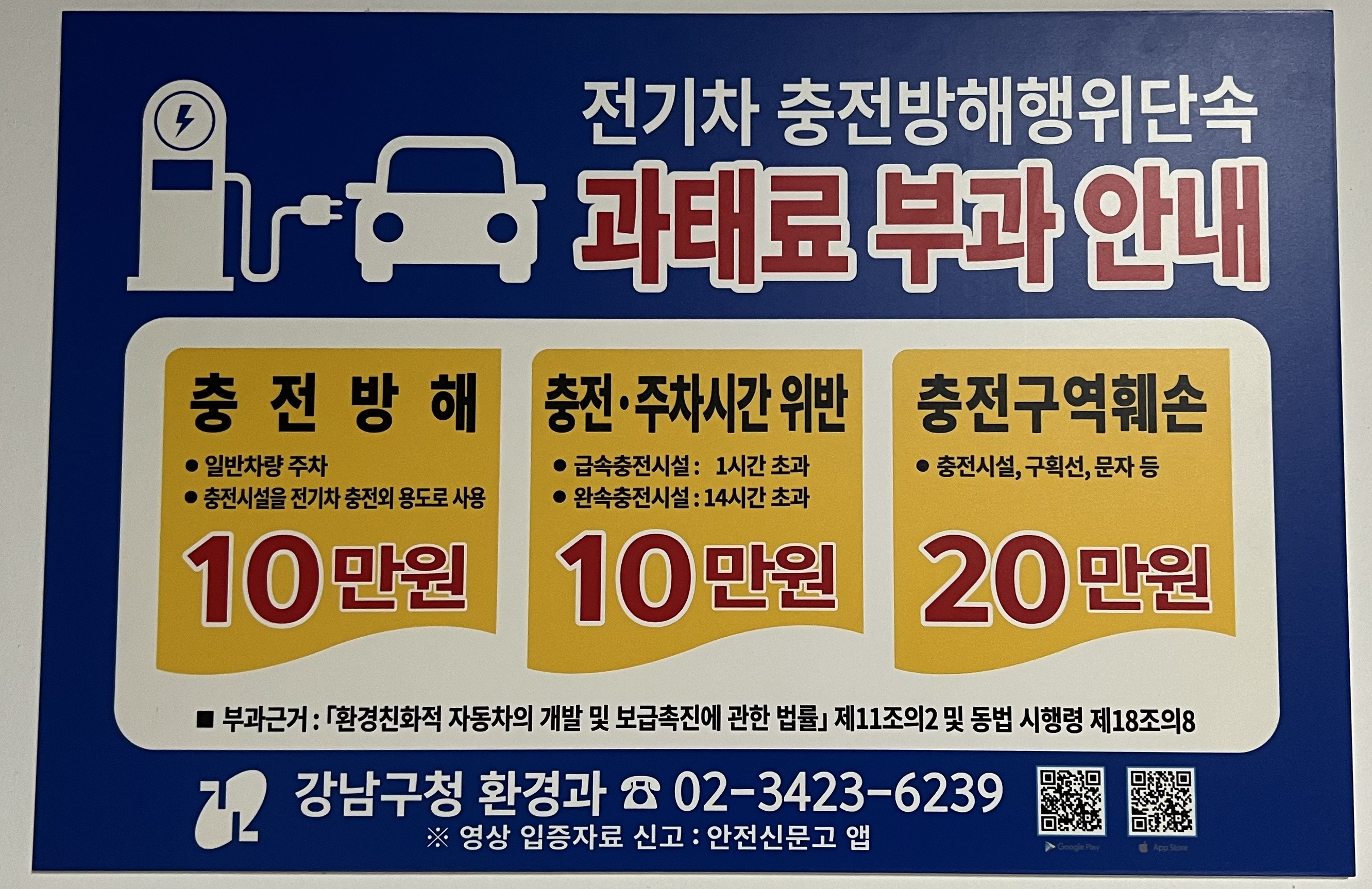 아! 그리고 테슬라 수퍼차저를 이용할 때에 알아두어야 할 사항이 있다. 전기차 충전방해행위를 할 시에 과태료가 부과된다는 점인데, 전기차 충전이 완료된 이후에도 오랫동안 충전소에 주차를 하면 과태료를 내야할 수 있으니 주의하도록 하자.