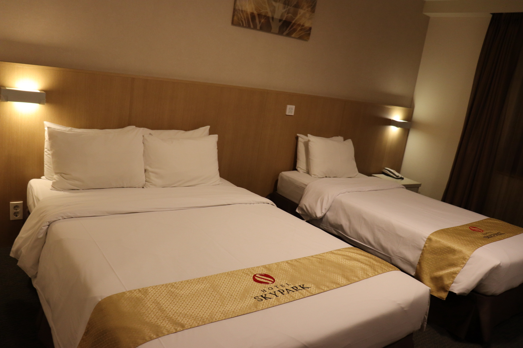 수많은 후보들이 오고가고 마지막으로 우리가 픽한 호텔은 스카이파크 호텔이었다. 6만원 정도의 저렴한 금액으로 디럭스 트윈룸을 예약할 수 있었다.
