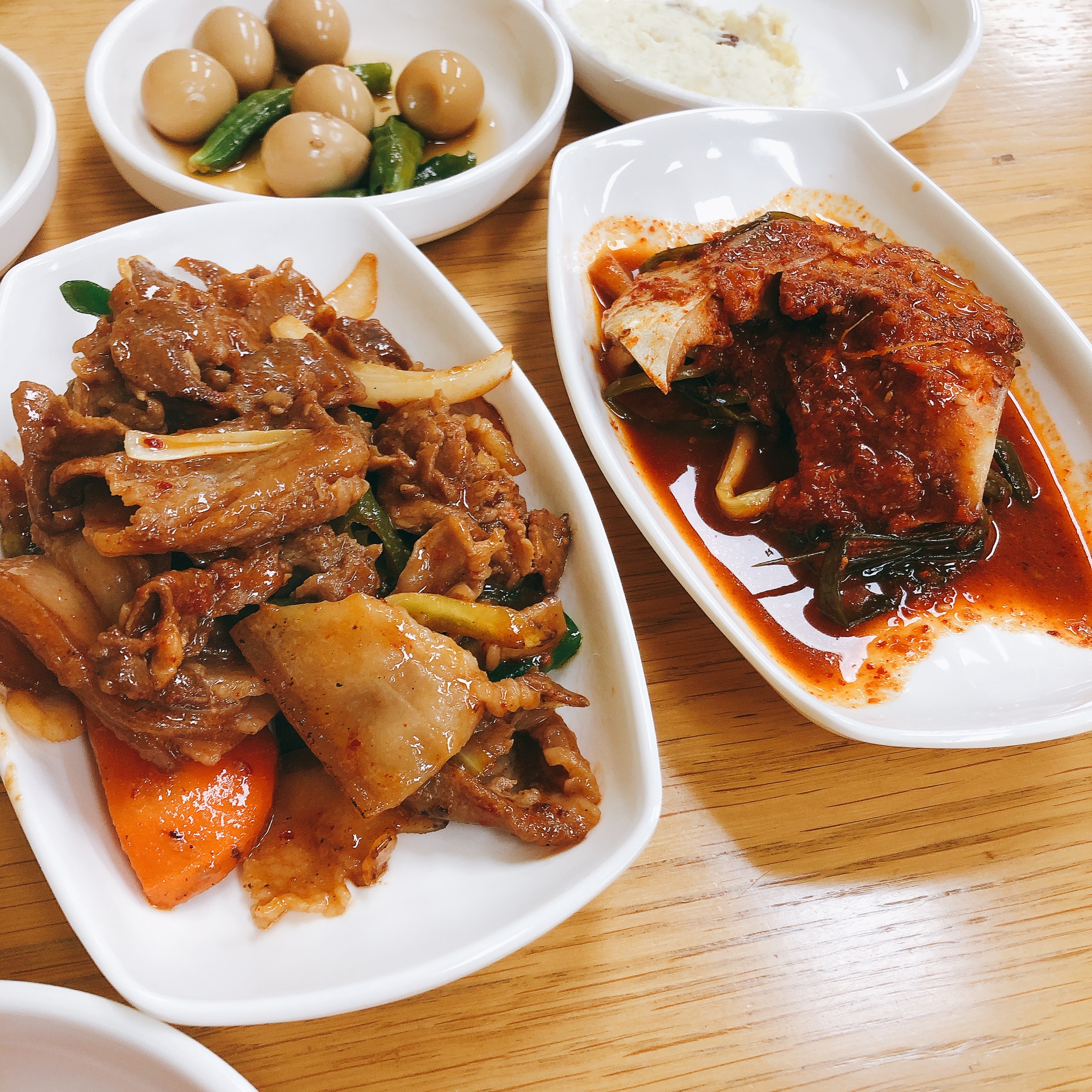 그렇게 구글이 소개해주는 음식점 네비를 따라 가게된 지구촌식당! 소문난 맛집은 아니지만 푸짐하고 정갈한 밑반찬들과 맛있는 메인 요리로 엄마가 해준 집밥 먹은 느낌이라 정말 든든했다.