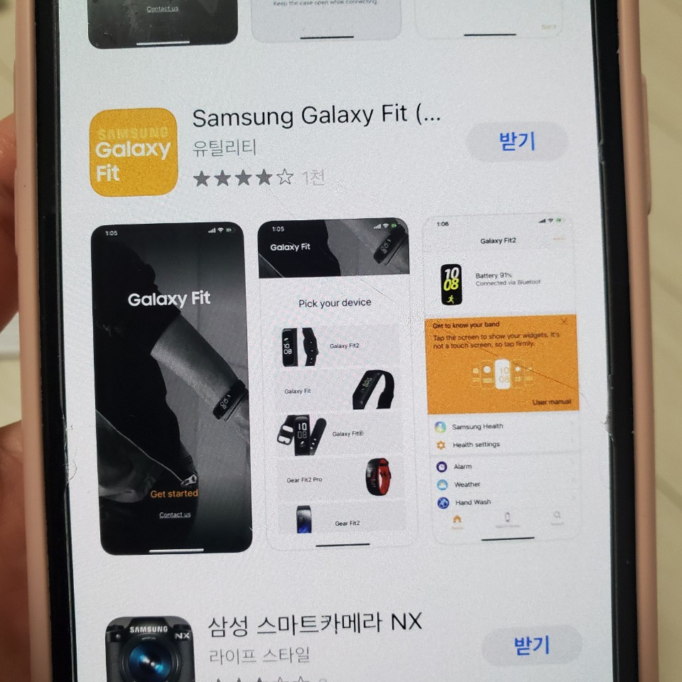 Samsung Galaxy Fit 이라는 앱을 다운로드한다. 추가로 Samsung Health 앱도 다운로드하자! 앱을 실행하고 가지고 있는 디바이스 선택을 하면 자동으로 블루투스를 통해 해당 기기를 찾아준다.