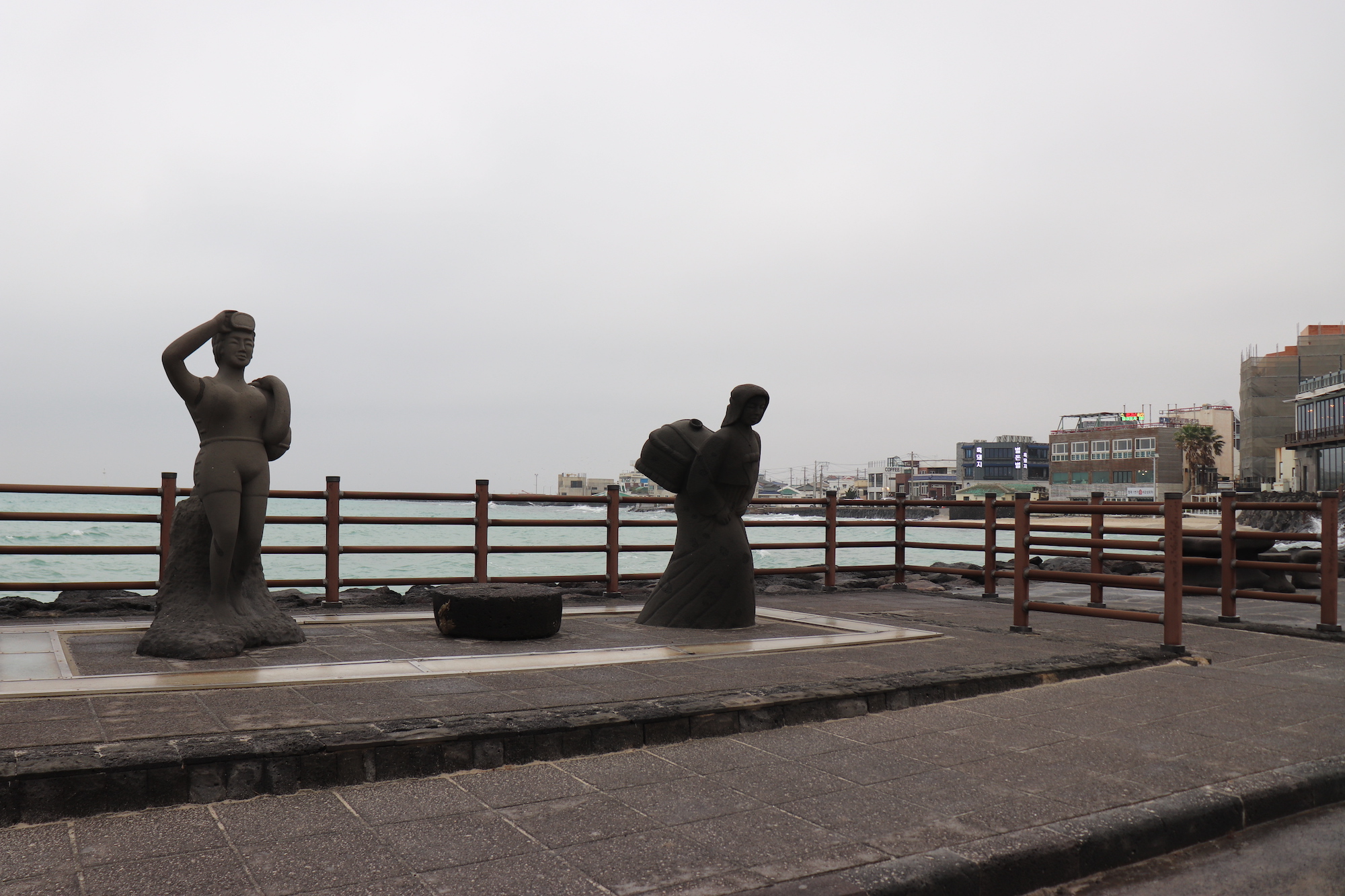 제주바다 하면 가장 먼저 떠오르는 해녀 조각상들이 우리를 반갑게 맞아 주었다. 여기서 잠깐! 협재해수욕장 간단 정보~