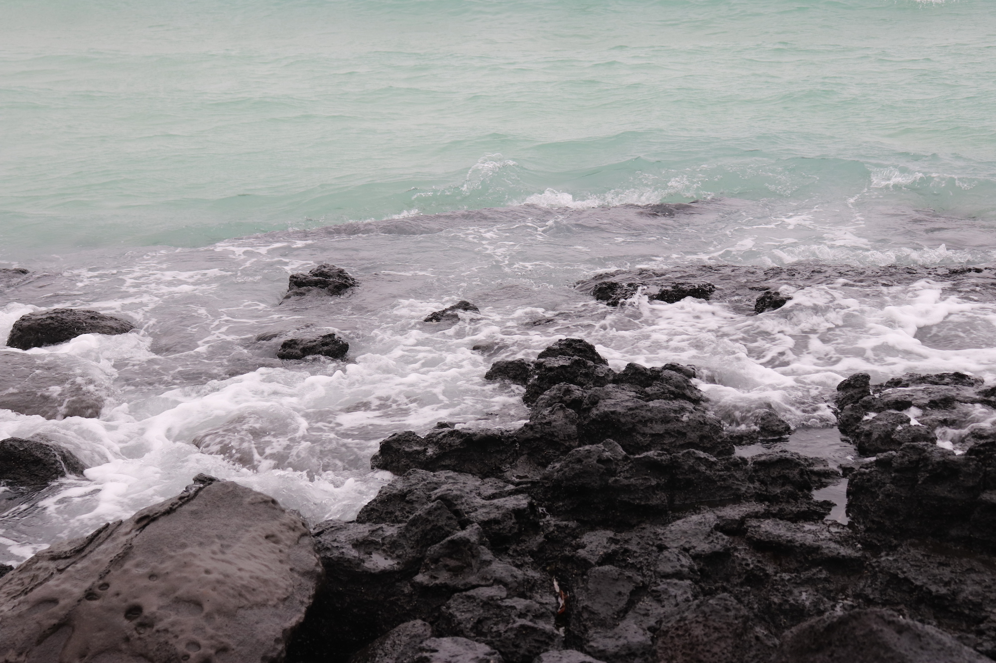 비는 그쳤지만 바람이 많이 불어서 파도가 거친 편이었다. 우리는 바다를 더 가까이 보고 싶어서 돌 위로 올라가 바다 배경으로 사진도 찍고, 돌에 부딪혀 하얗게 부서지는 파도도 한참을 바라보았다. (출입금지구역 아님)
