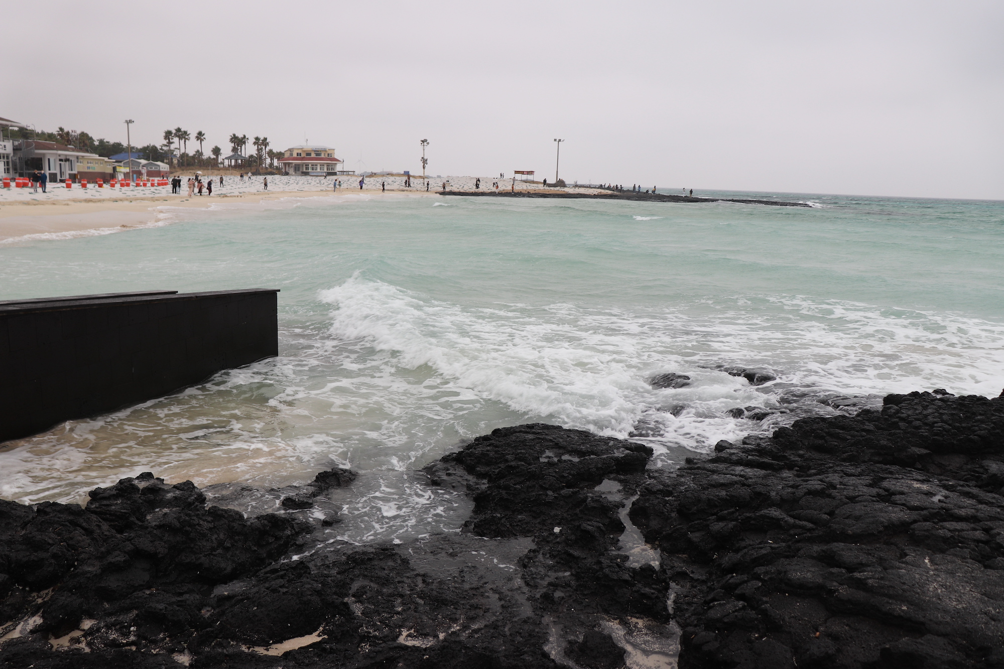 협재 해수욕장은 절반은 현무암으로 이루어진 방파제, 절반은 모래사장으로 되어 있었다.