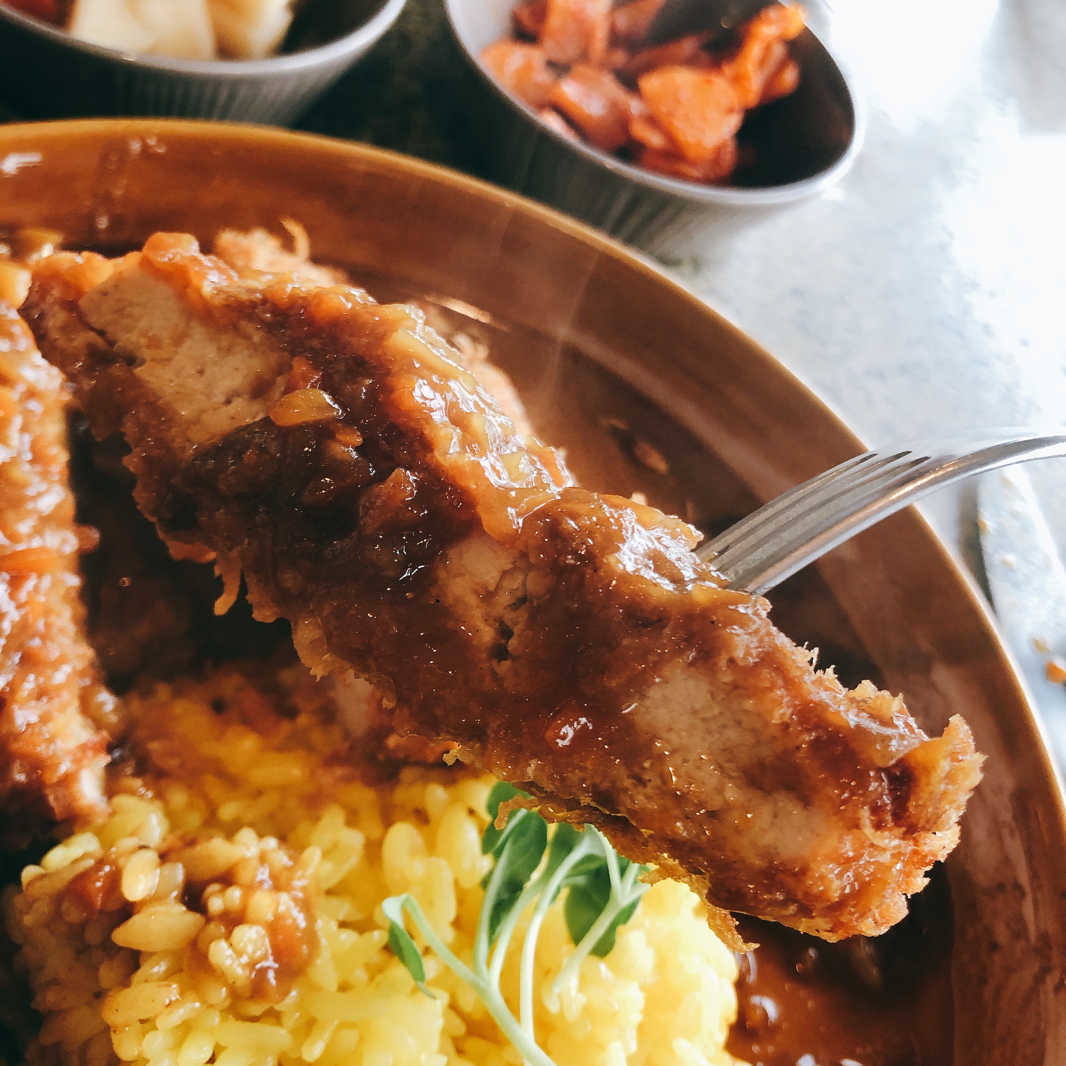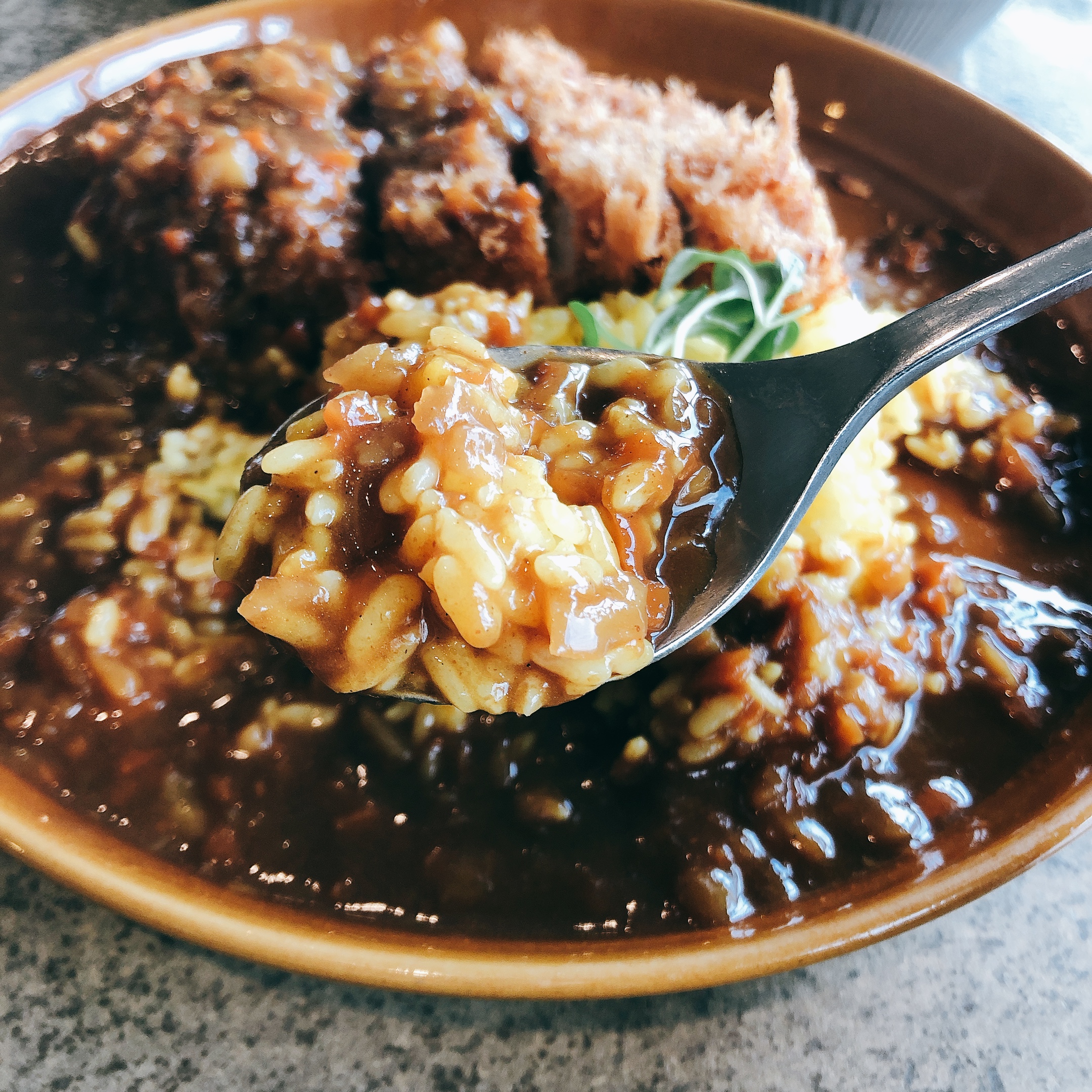계란 카레에는 식빵이 두조각 포함되어 있었고, 계란과 함께 먹으니 훨씬 부드럽게 느껴졌다. 돈카츠 카레에 올라간 돈카츠도 적당히 바삭바삭하고 따뜻해서 카레 소스에 찍어먹으니 식감이 괜찮았다.