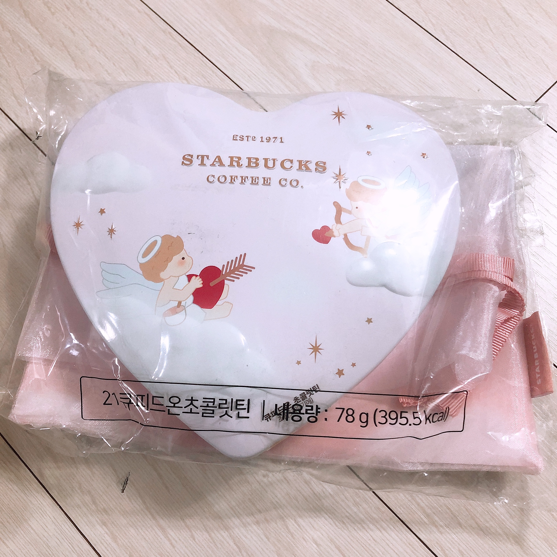 초콜렛은 21큐피드온초콜릿틴~ 안그래도 스타벅스에 공지사항이 올라온 것을 보고 케이스가 예뻐서 갖고 싶다고 생각했는데... 어떻게 알았지? (알았을리가 없다-_-) 함께 들어있는 파우치조차 분홍분홍하니 예쁘다.