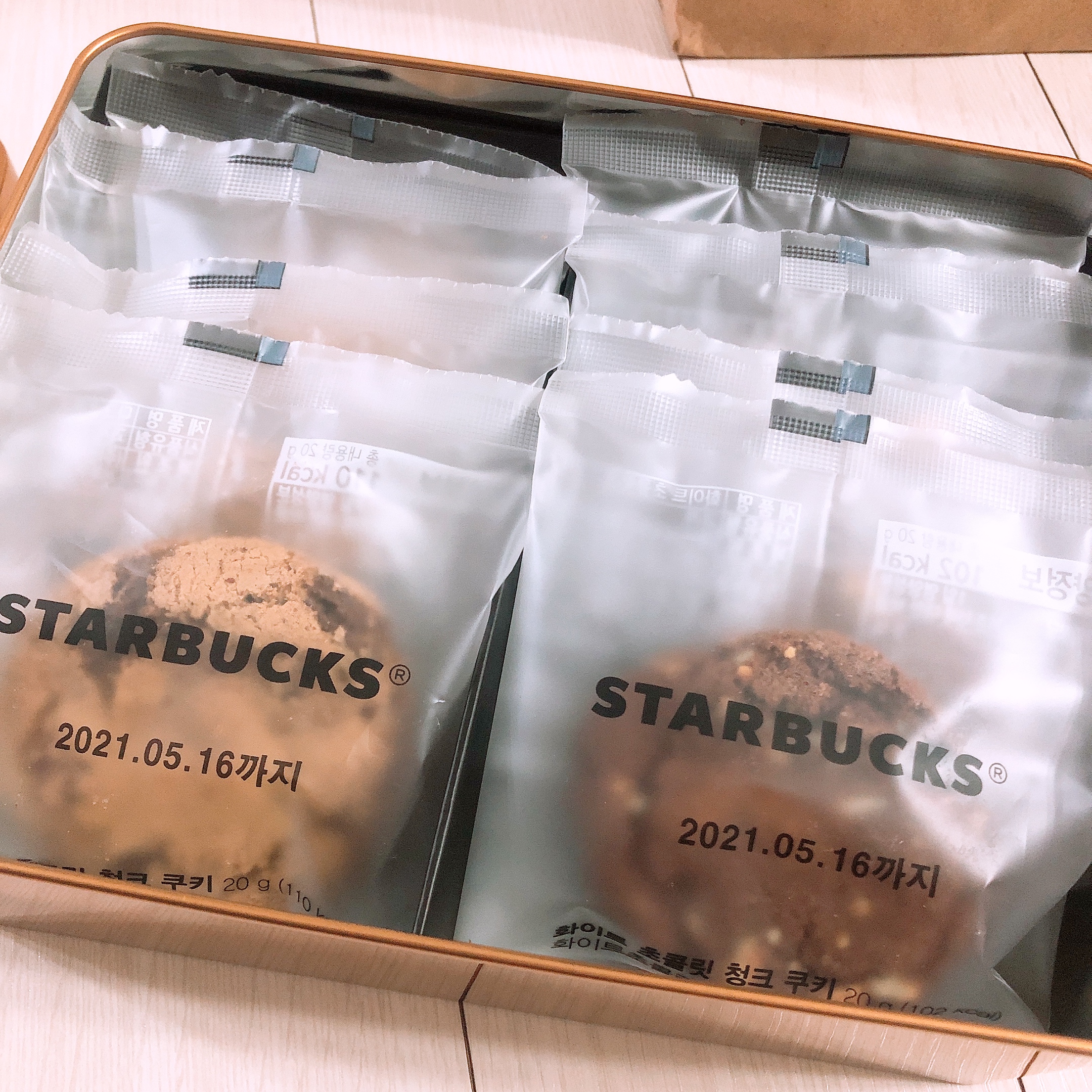스타벅스 종이백 안에는 초콜렛과 쿠키가 들어 있었다.