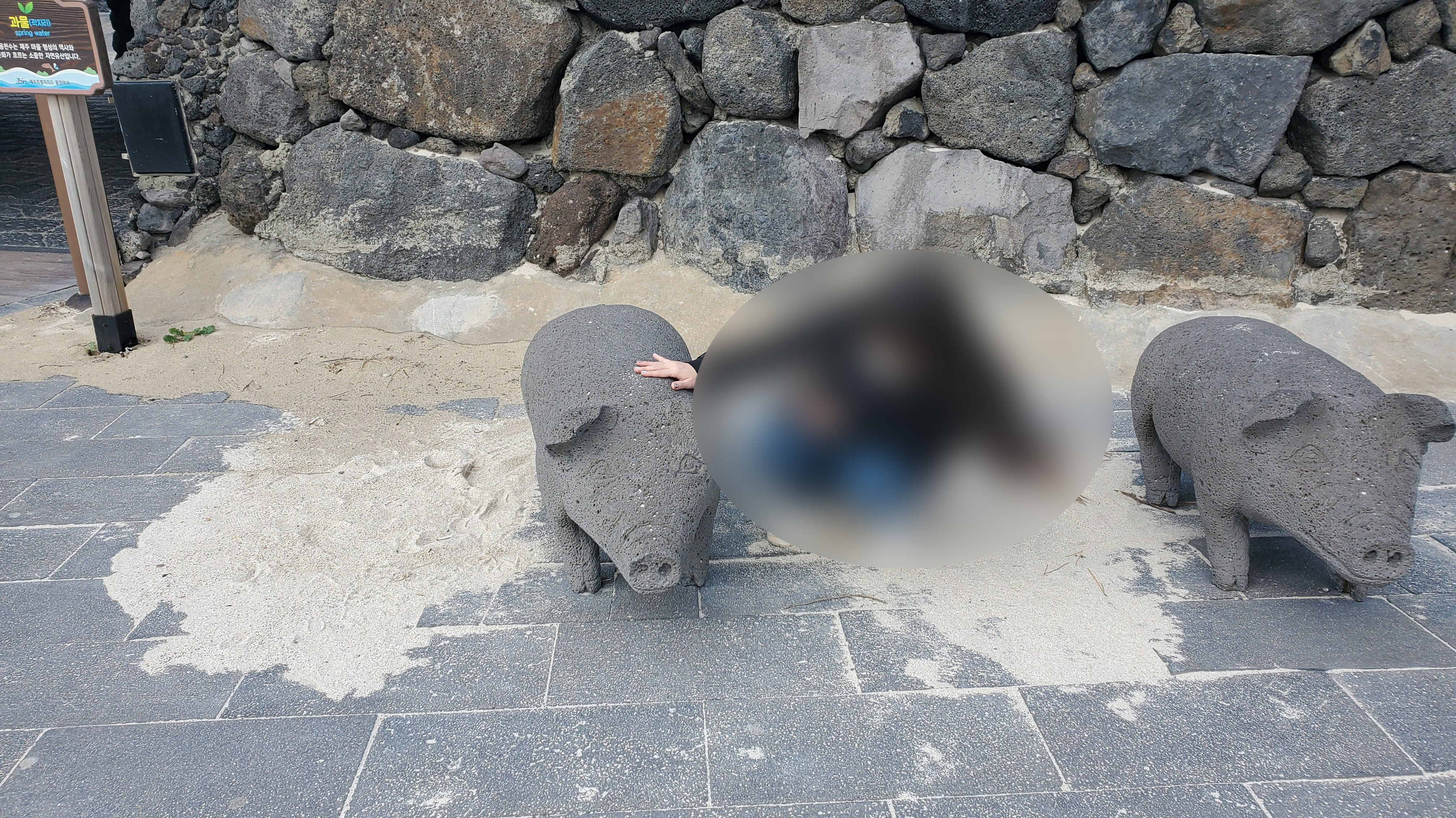 걷다가 흑돼지 두마리를 발견했다. 아아 현무암으로 만들어진 것 같으니 흑돼지는 아니고 돌돼지인가? 안그래도 살이 찌고 있었는데 코로나 이후 기하급수적으로 몸무게가 불어난 우리는... 우리도 곧 이렇게 될 거라는, 머지 않았다는 무시무시한 대화를 하기도 했다.