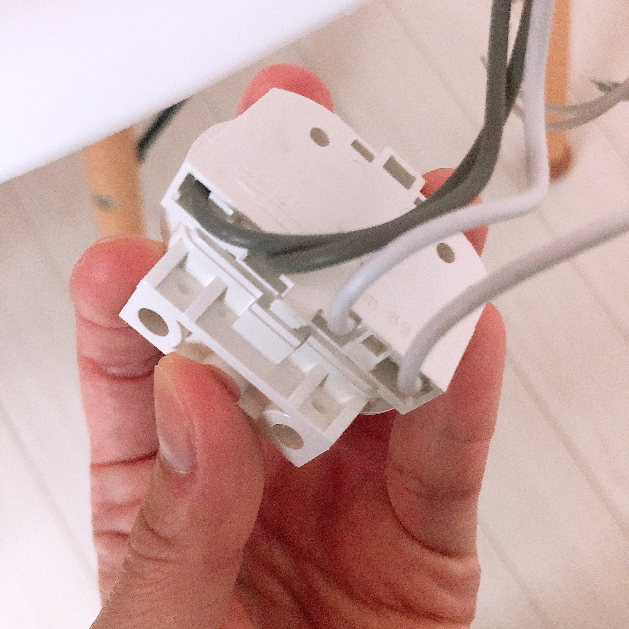 전선이 튼튼하게 고정되어 있어서 단순히 손으로 잡아당겨서는 분리되지 않는다. 제품마다 구조가 다르기 때문에 전선 고정의 원리를 잘 파악하여 전선을 고정시키고 있는 부분을 약하게 해 주어야 한다. 우리가 교체한 램프 꽂이의 경우에는 뾰족한 도구를 이용해서 전선 옆부분을 스위치처럼 눌러주면 손쉽게 전선을 분리할 수 있었다.