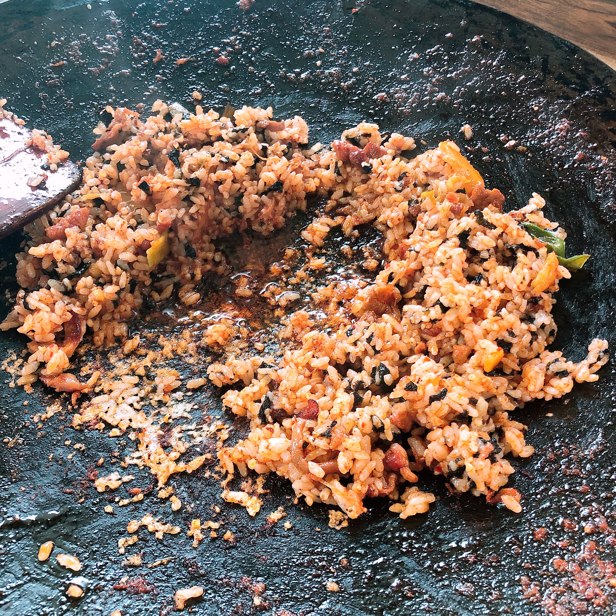 사장님께서 볶음밥도 맛있다며 추천해주셨는데, 오리불고기를 다 먹으면 도저히 볶음밥을 먹을 수 없을 것 같았다. 그래서 그냥 남은 음식은 포장하고 밥 한공기를 솥뚜껑에 볶았다.