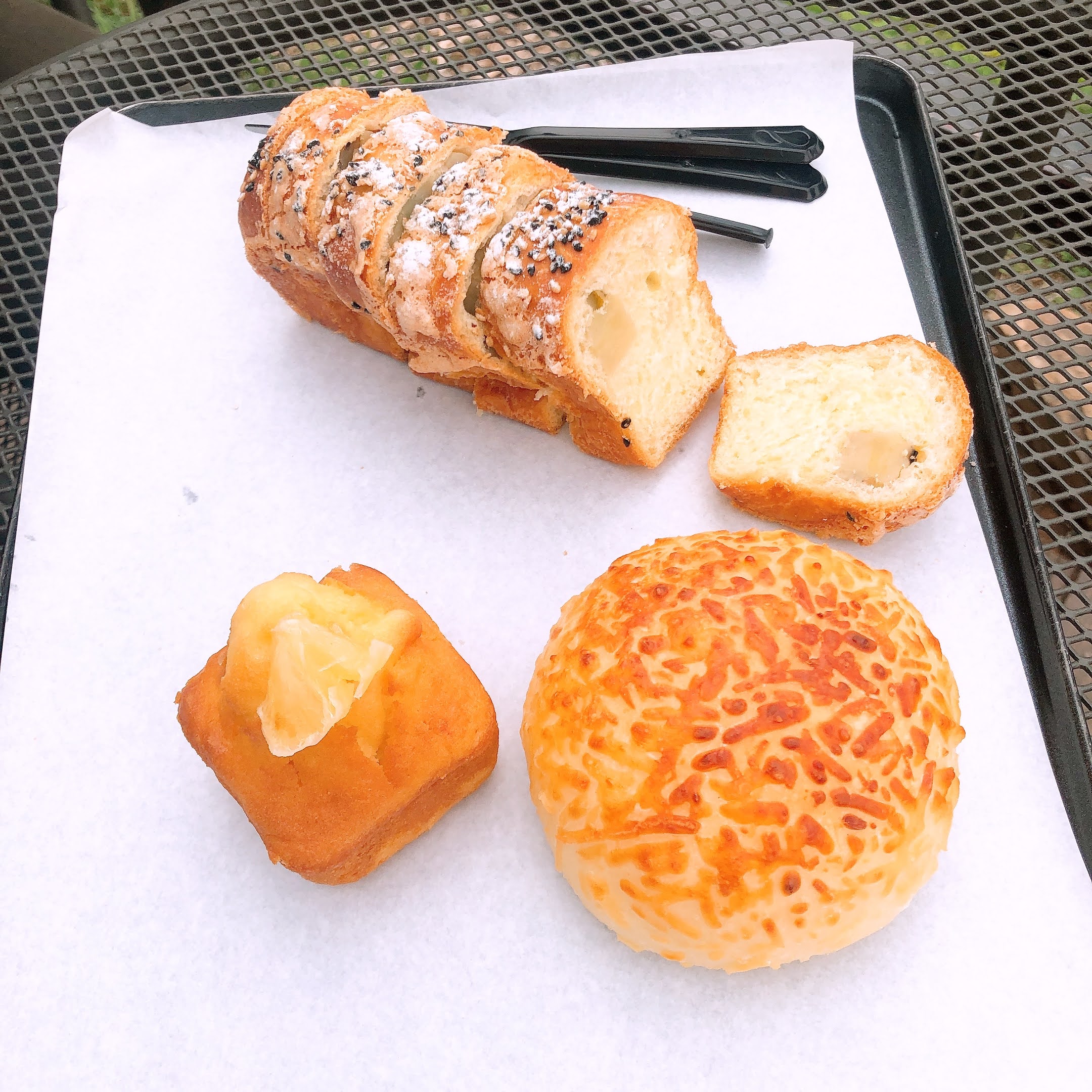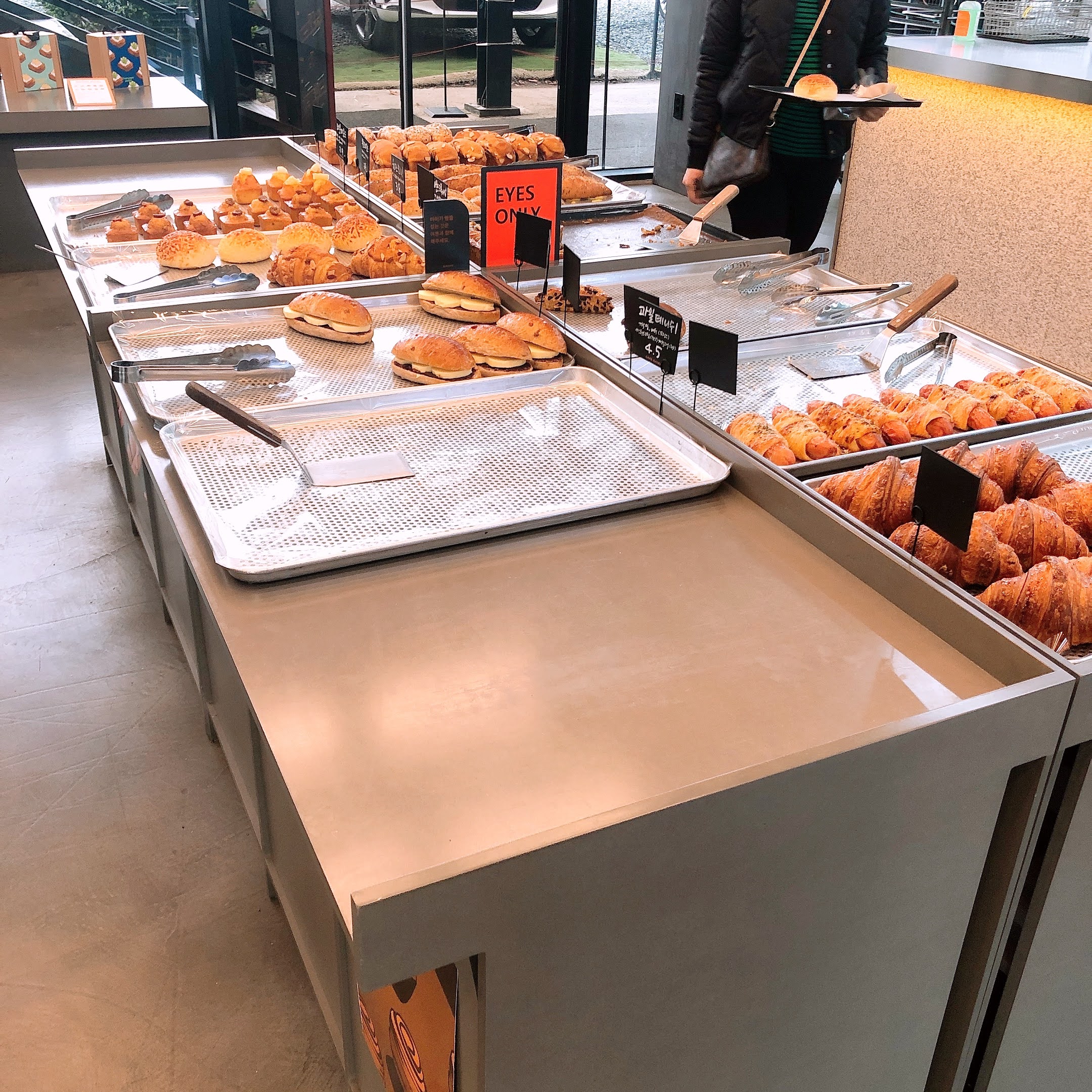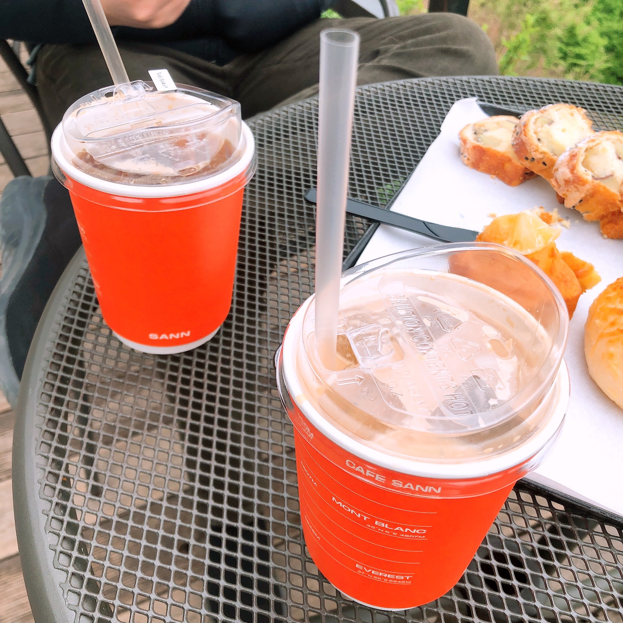 우리는 빵과 커피를 주문해서 시원한 바람이 부는 야외 데스크에 앉았다. 빵을 한 개만 사려고 했는데 이것저것 담다 보니 많아져버렸다. 이거 다 먹으면 저녁은 못 먹겠는데? 조금 먹고 남기지 뭐, 하고 먹기 시작했으나 역시나~ 우리는 앉은 자리에서 빵을 다 먹고 결국은 저녁을 먹지 못했다는...🤣