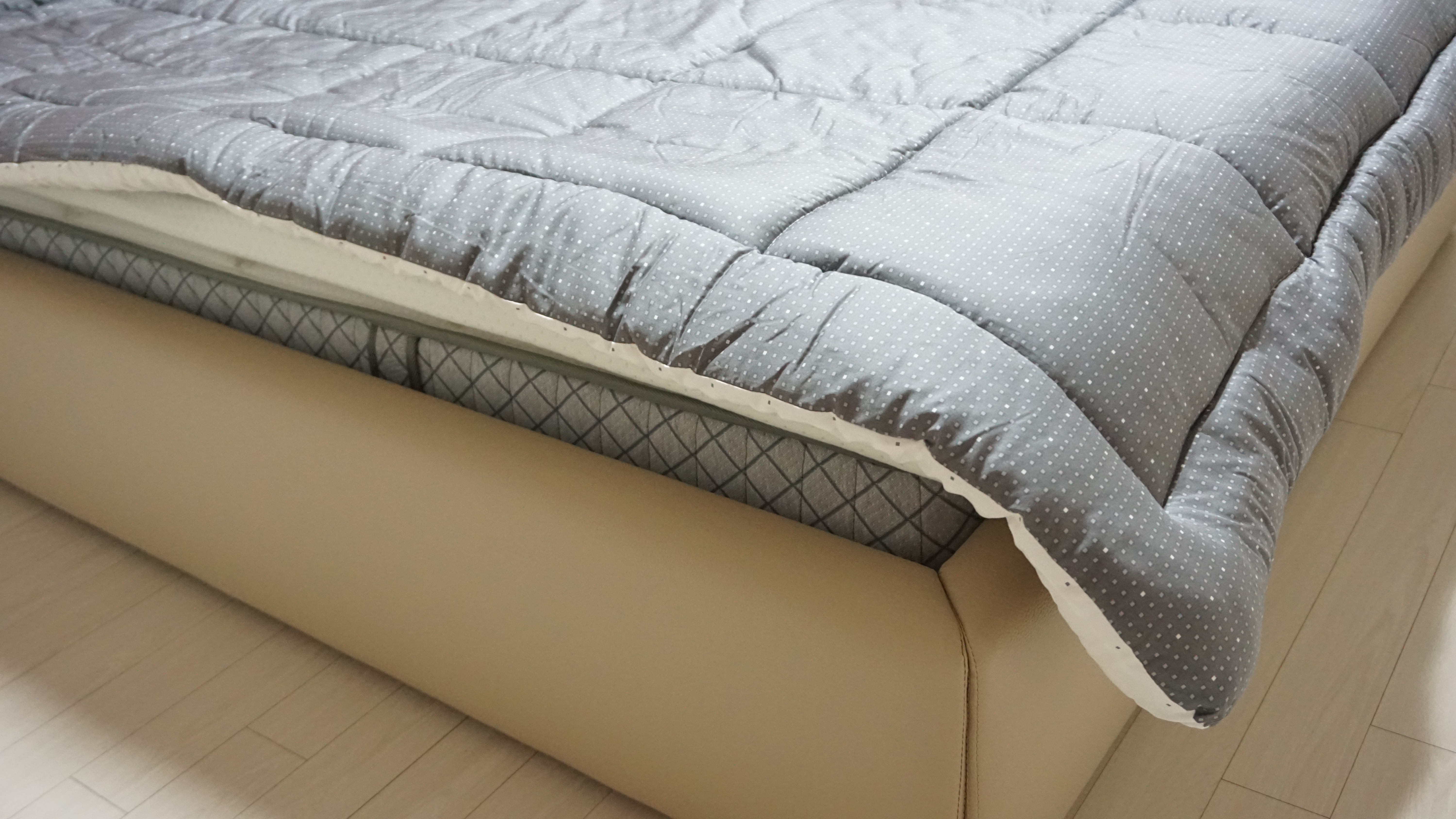 매트리스가 약간 딱딱했는데 토퍼를 깔고 나니 완전 푹신 + 아늑한 침대가 되었다. 원래는 매트리스 커버도 씌울 예정이었는데, 사이즈가 잘못 배송되어 잠시 대기 상태다. 침대를 받자마자 커버를 씌우자며 열심히 매트리스를 들어내고 커버를 끼웠는데, 매트리스 반밖에 덮이지 않아 둘다 잠시 굳음. 상황 파악(!)