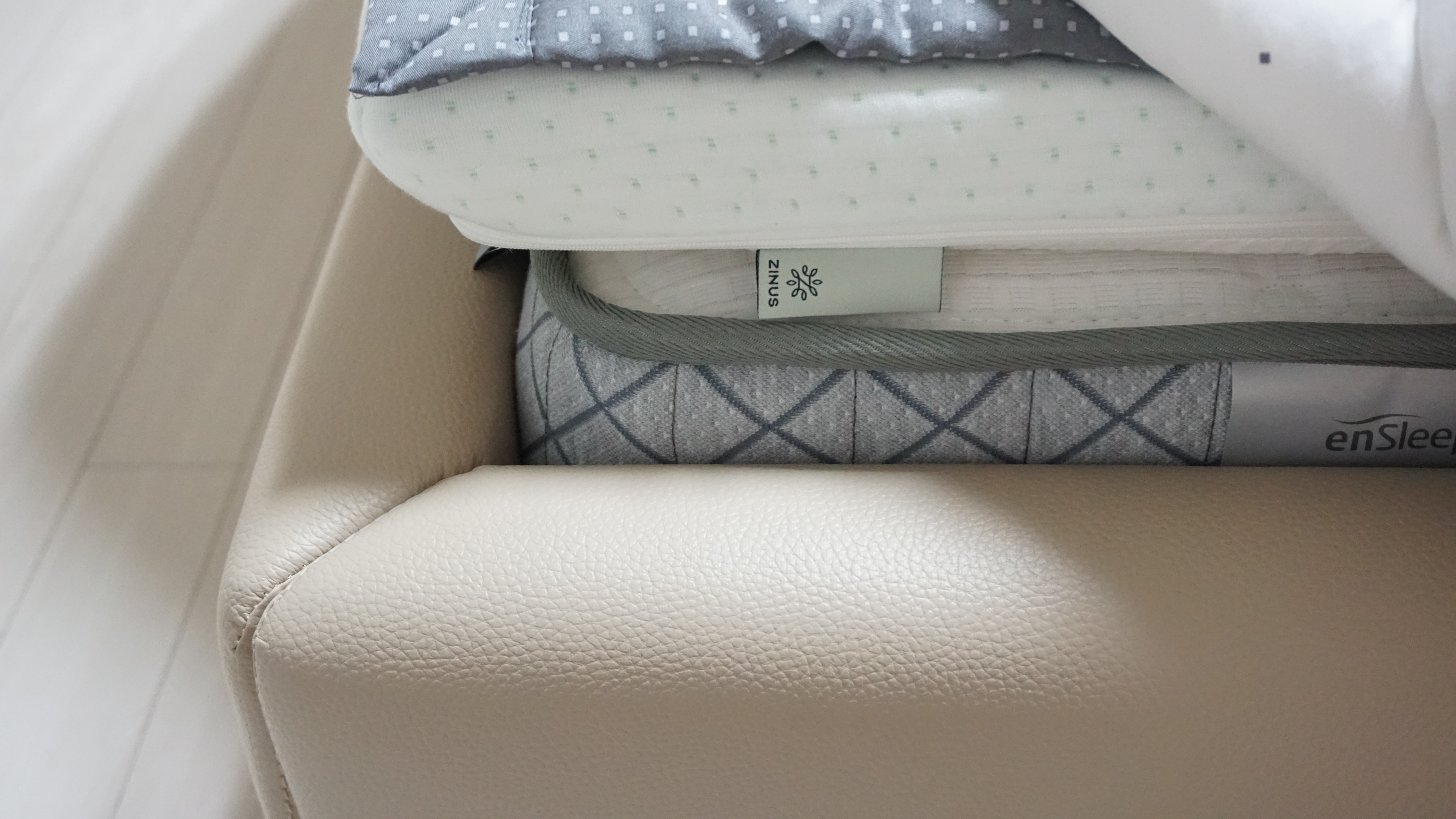 매트리스가 약간 딱딱했는데 토퍼를 깔고 나니 완전 푹신 + 아늑한 침대가 되었다. 원래는 매트리스 커버도 씌울 예정이었는데, 사이즈가 잘못 배송되어 잠시 대기 상태다. 침대를 받자마자 커버를 씌우자며 열심히 매트리스를 들어내고 커버를 끼웠는데, 매트리스 반밖에 덮이지 않아 둘다 잠시 굳음. 상황 파악(!)