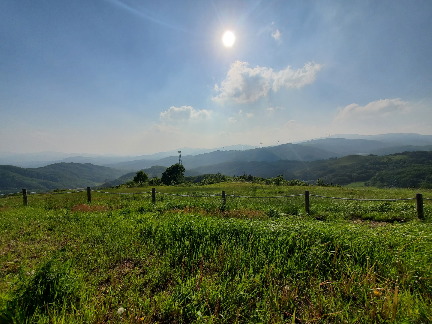 하지만 후회하면서도 엄청 잘 걷는 우리... 우리가 방문한 날은 바람이 많이 불어서 하늘마루 전망대까지는 트랙터 마차도 운행을 하지 않는다고 했는데, 우린 방목지를 지나 숲 속 쉼터를 지나 하늘 속 초원을 지나 하늘마루 전망대까지 가는 데 성공했다. 솔직히 말하면 길을 잃었다-_-; 걷다 보니 사람이 아무도 없고 너무 힘들어서 다시 돌아갈까 몇 번을 고민했지만, 눈 앞의 언덕 너머에서 우리를 기다리고 있는 것이 무엇일까 하는 기대감에 조금만, 조금만 더 하다보니 어느 새 트랙터 마차의 종착역에 도착해 있었다.
