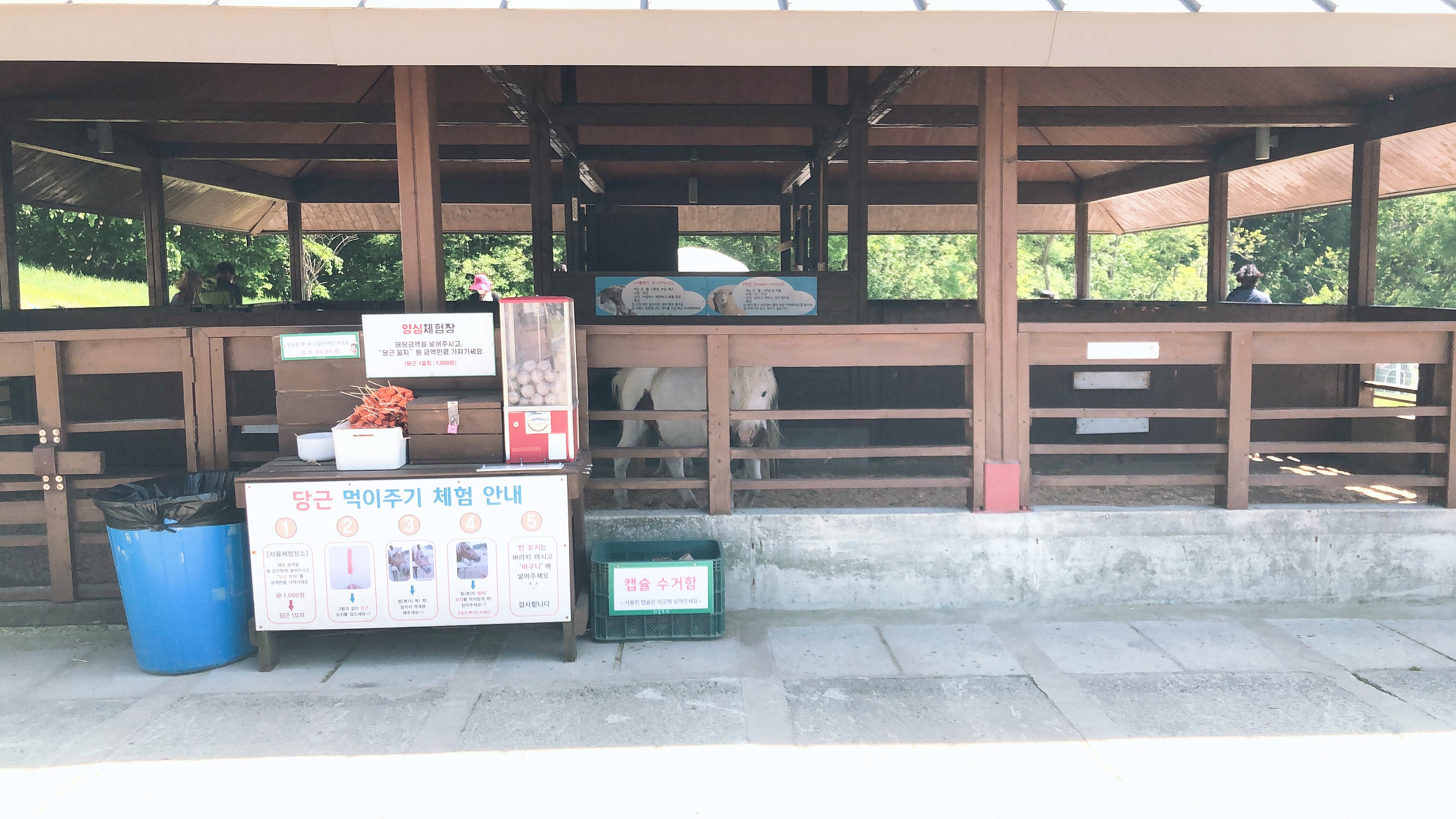 아기 동물원 옆에는 울타리가 있고 양떼가 한가로이 풀을 뜯고 있다. 건초를 구매해서 울타리 안으로 들어가 먹이주기 체험이 가능하다. 조용하고 포동포동한 순한 양들이 너무 귀여워서 한마리 집으로 데려가서 키웠으면 좋겠다, 하는 생각도 했다.