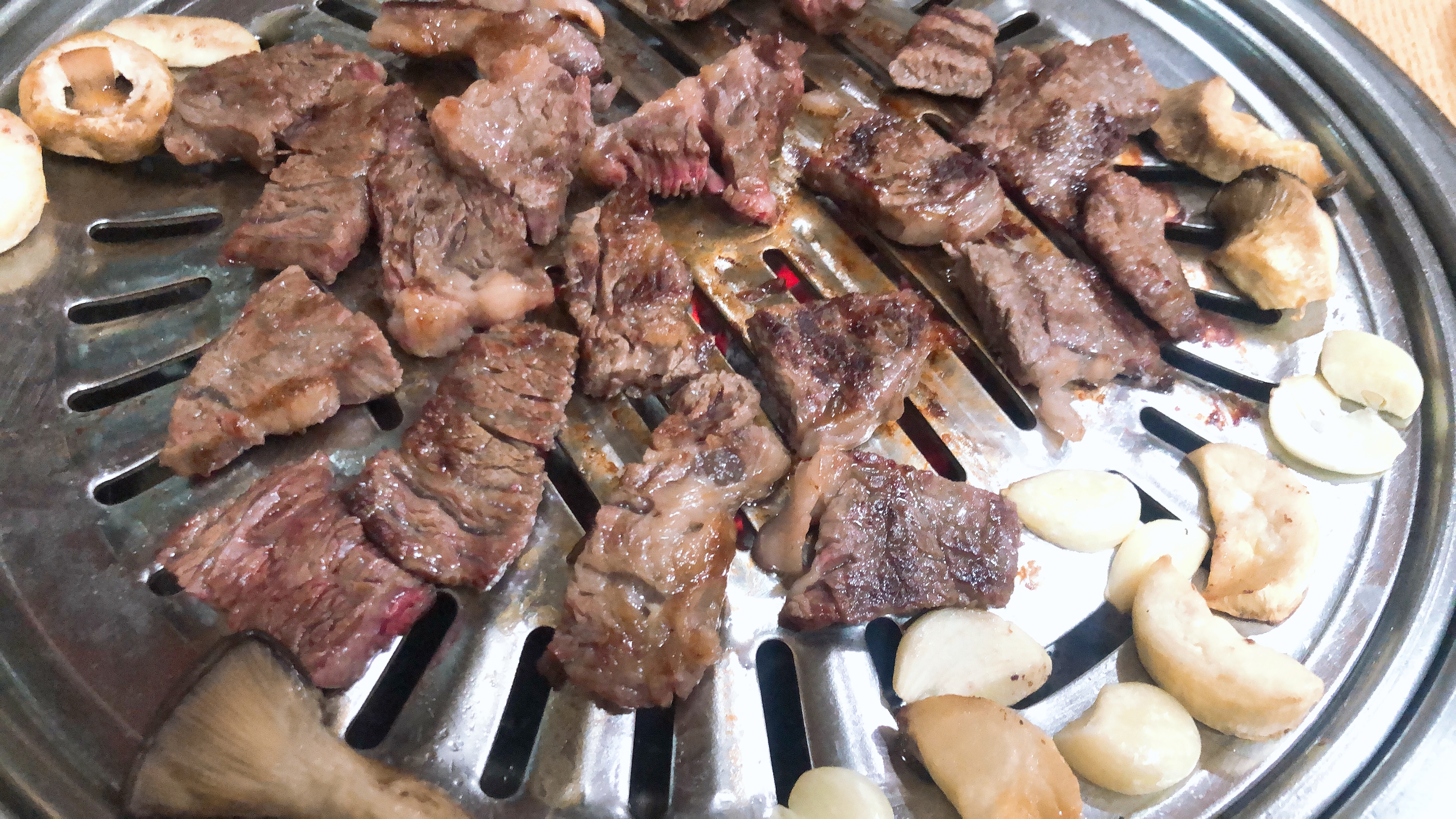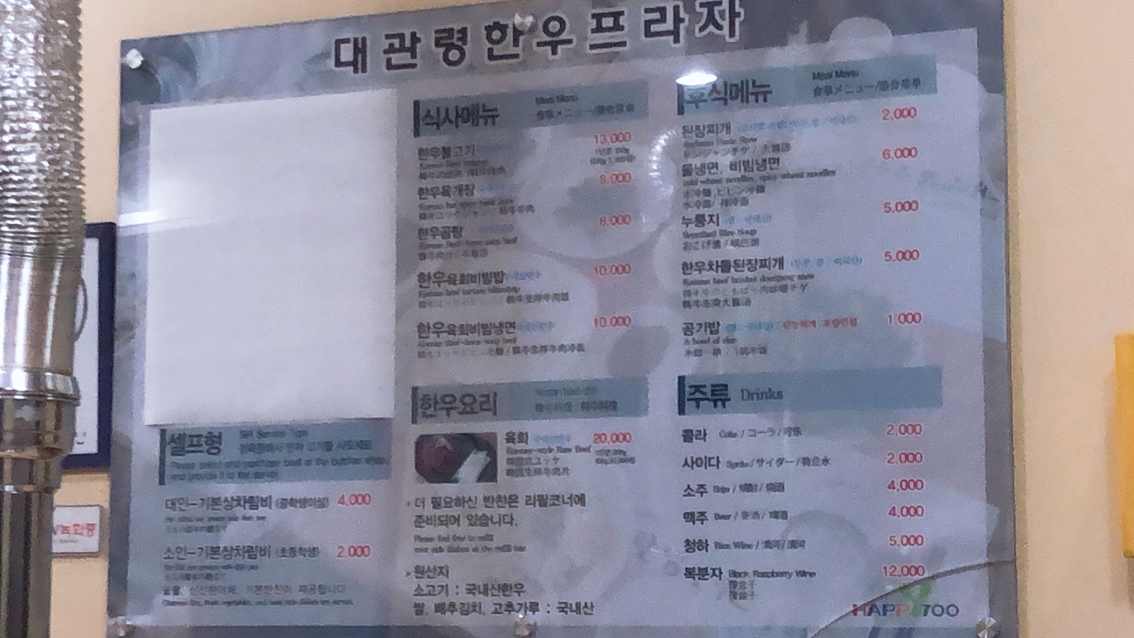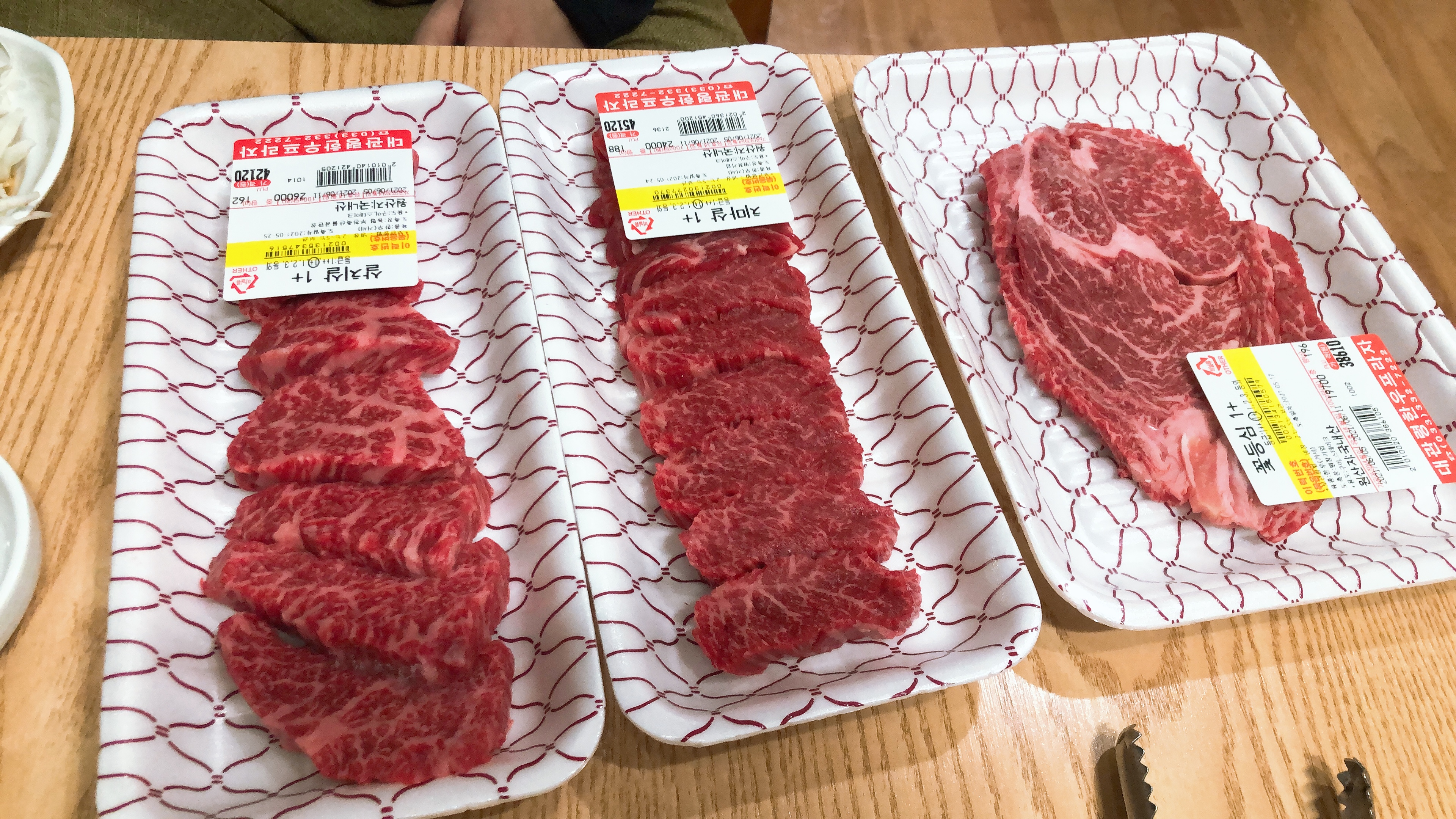 대관령 한우프라자는 정육식당이라서 고기를 직접 골라 결제한 뒤 옆에 있는 식당으로 이동하면, 고기를 구워먹을 수 있도록 테이블 세팅을 해준다. 우리는 살치살, 치마살, 꽃등심을 각각 선택했다.