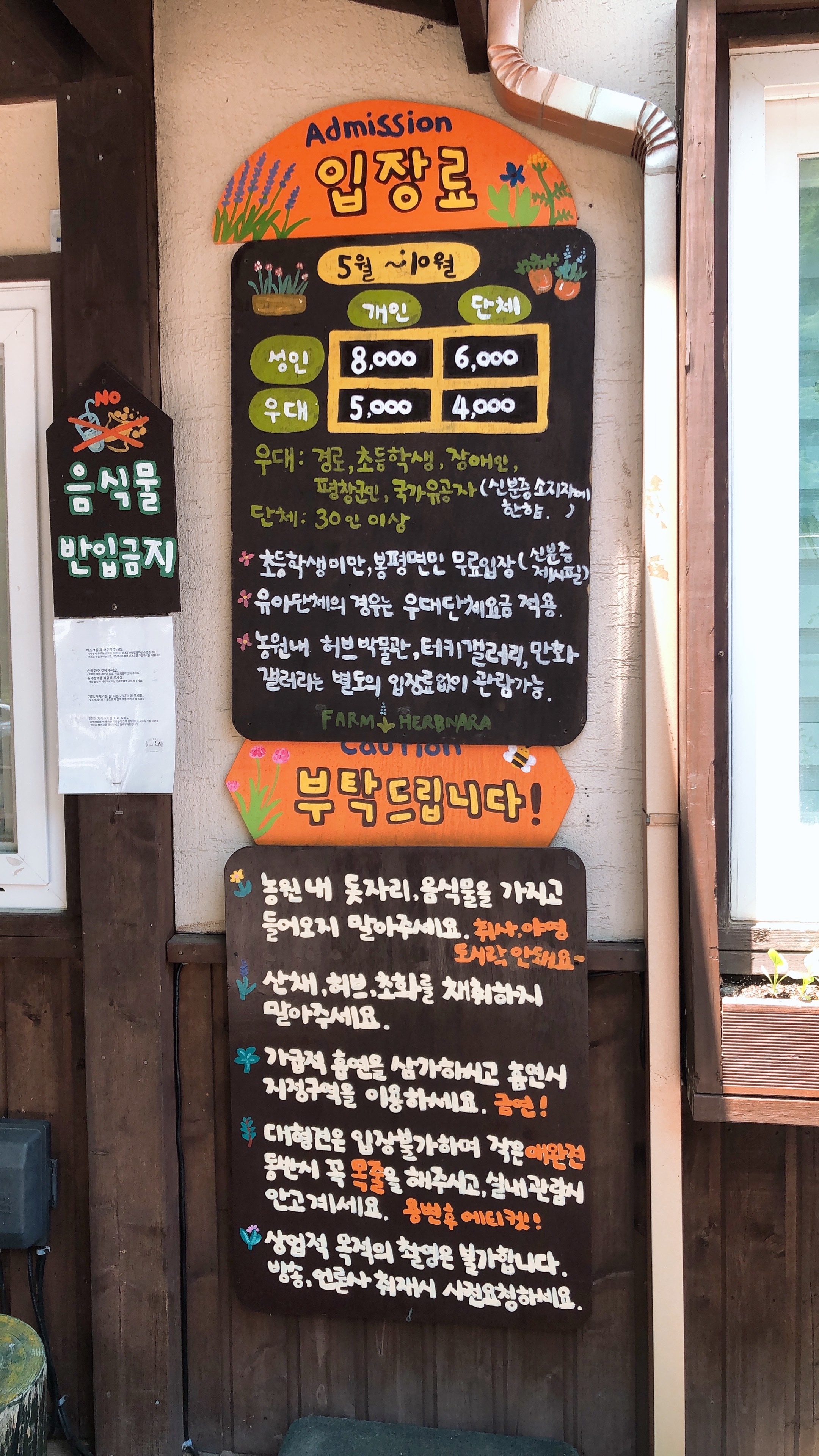 - 농원 내 허브박물관, 터키갤러리, 만화갤러리는 별도의 입장료 없이 관람 가능