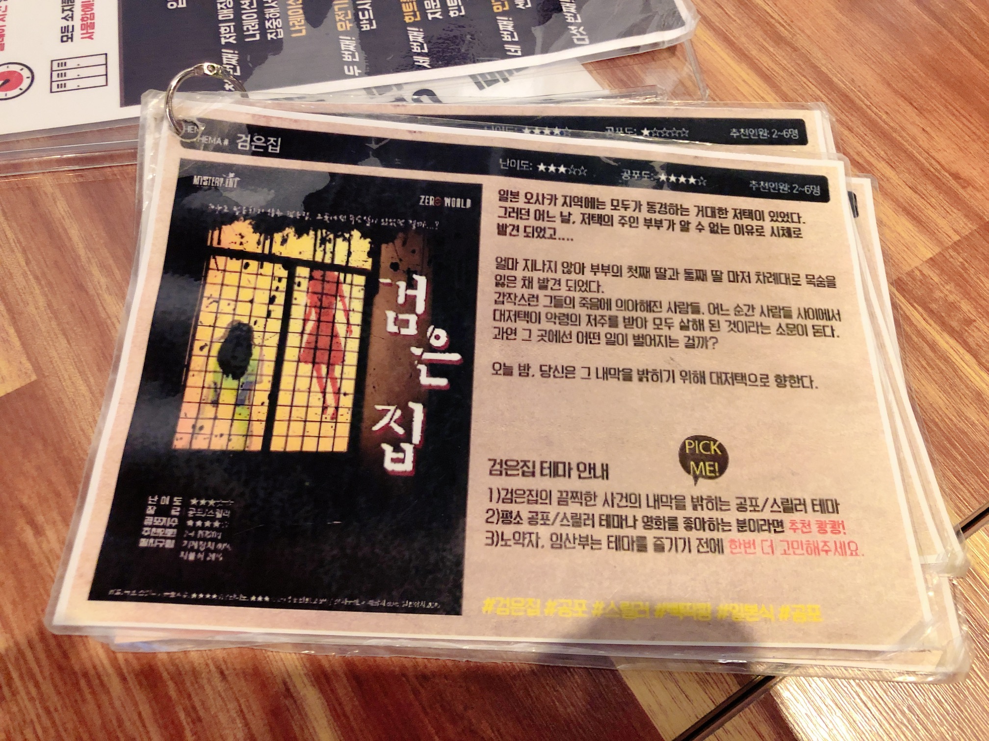 이번에 선택한 테마는 제로월드 서현점에 있는 “검은집” 이었다. 예전부터 방탈출 공포 테마로 유명했고 진심 무섭다는 후기가 많아서 궁금해하고 있었는데, 드디어 나도… 여긴 정말 소문을 많이 들어서 기대 반 + 두려움 반이었다.